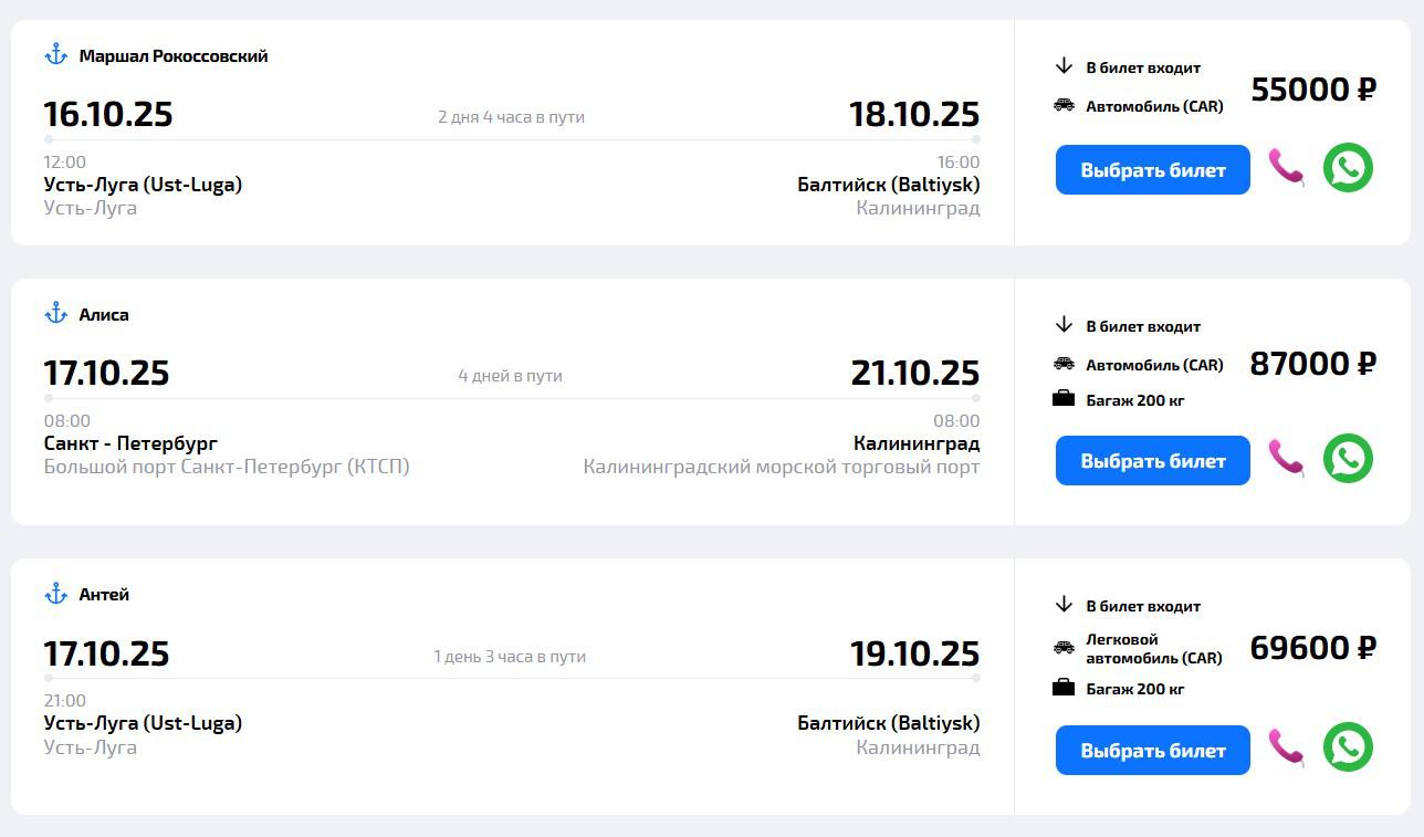 - Из порта Усть-Луга в Балтийск — от 69 600 ₽;