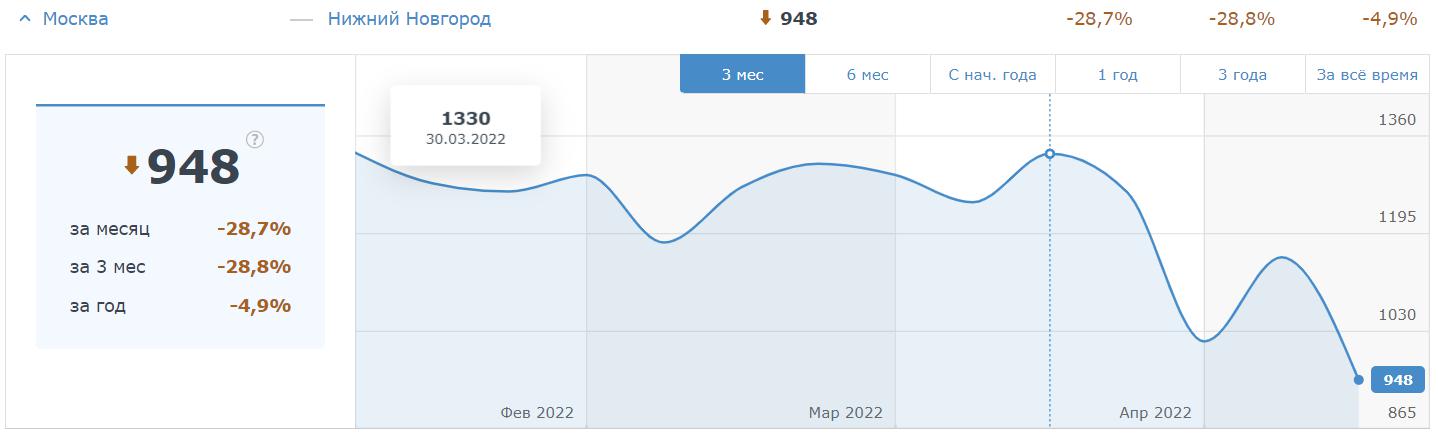 Ощутимые изменения произошли по множеству направлений. Сильнее всего снизились ставки по направлениям Москва — Нижний Новгород (−28,7%) и Москва — Казань (−27,2%). Подробнее о том, как за месяц изменился российский рынок грузоперевозок — читайте в статье.