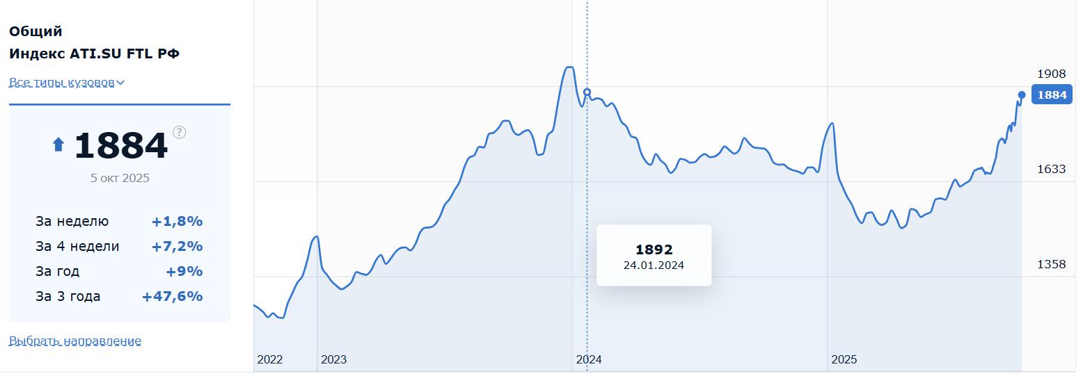 Индекс ATI.SU растёт с апреля 2025 года. В конце августа темпы его роста резко ускорились, а за последние четыре недели показатель вырос на 7,2%.