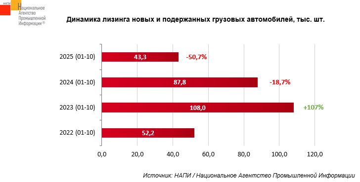 Сообщается, что в 2022-2024 годах доля подержанных грузовиков в общей структуре лизинга составляла 20-26%, а в 2025 году она выросла до 52,6%.