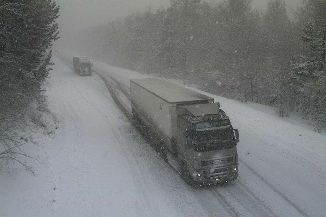 - вводить временный запрет или ограничение движения для грузовиков массой свыше 3,5 или 12 тонн на федеральных трассах в период снегопадов;