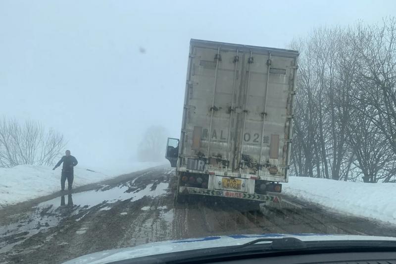 Полицейские пообщались с водителями с помощью онлайн-переводчика и узнали причину сложившейся ситуации. Они вызвали трактор, с помощью которого фуру удалось вытащить из грязи. Дальнобойщики поблагодарили стражей порядка и продолжили путь.